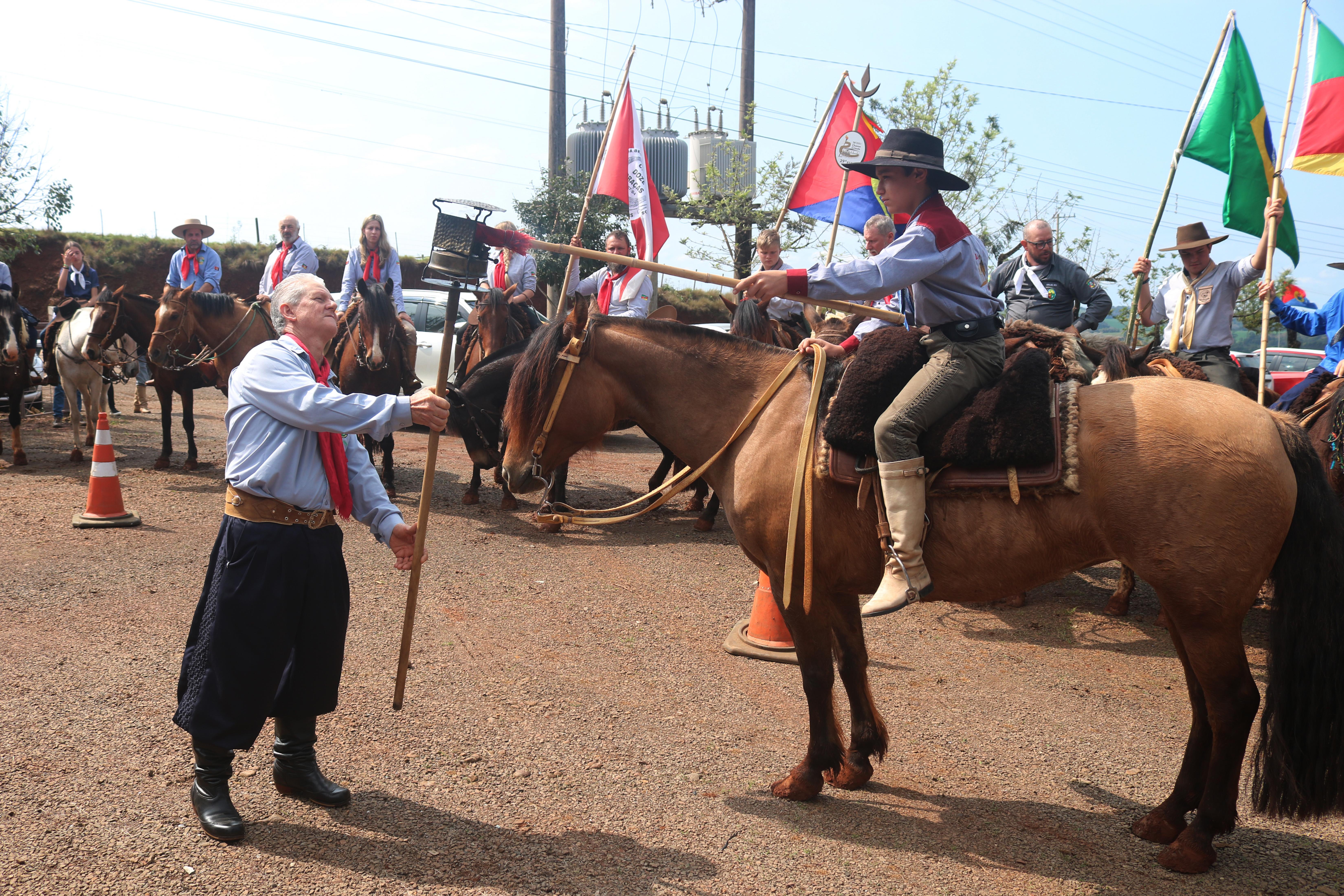 O prefeito Vermelho Pansera participou, no domingo (10), da recepção da Chama Crioula e da Primeira Ronda Crioula: A Centelha da Juventude, com promoção do CTG Doze Braças. A Ronda contou com a presença de Hélio Ferreira, que explanou sobre “O legado da juventude construída através do tempo”.