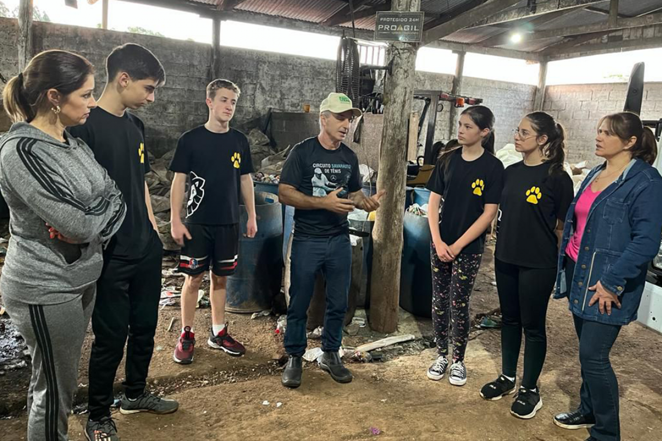 Na tarde de segunda-feira (02), o secretário da Infraestrutura Rural, Agricultura e Meio Ambiente, Voldinei João Sebben, acompanhou a visita dos integrantes do movimento LEO Teen à Usina de Reciclagem do Município. O objetivo foi apresentar aos jovens o local que abriga a estrutura de separação de resíduos.