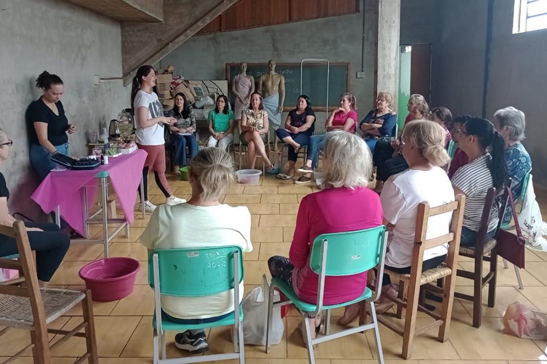 Participaram do encontro do dia as terapeutas Renata Trentin, Sara Perondi e Dani Paloschi, que explicaram as atividades realizadas com o grupo. “Levamos bem-estar e autocuidado, com o uso de produtos naturais como o óleos essências e produtos de higiene e beleza natural. Também levamos um pouco da terapia holística com uma conversa para mostrar um modo diferente de ver as coisas e as dificuldade”, disseram.