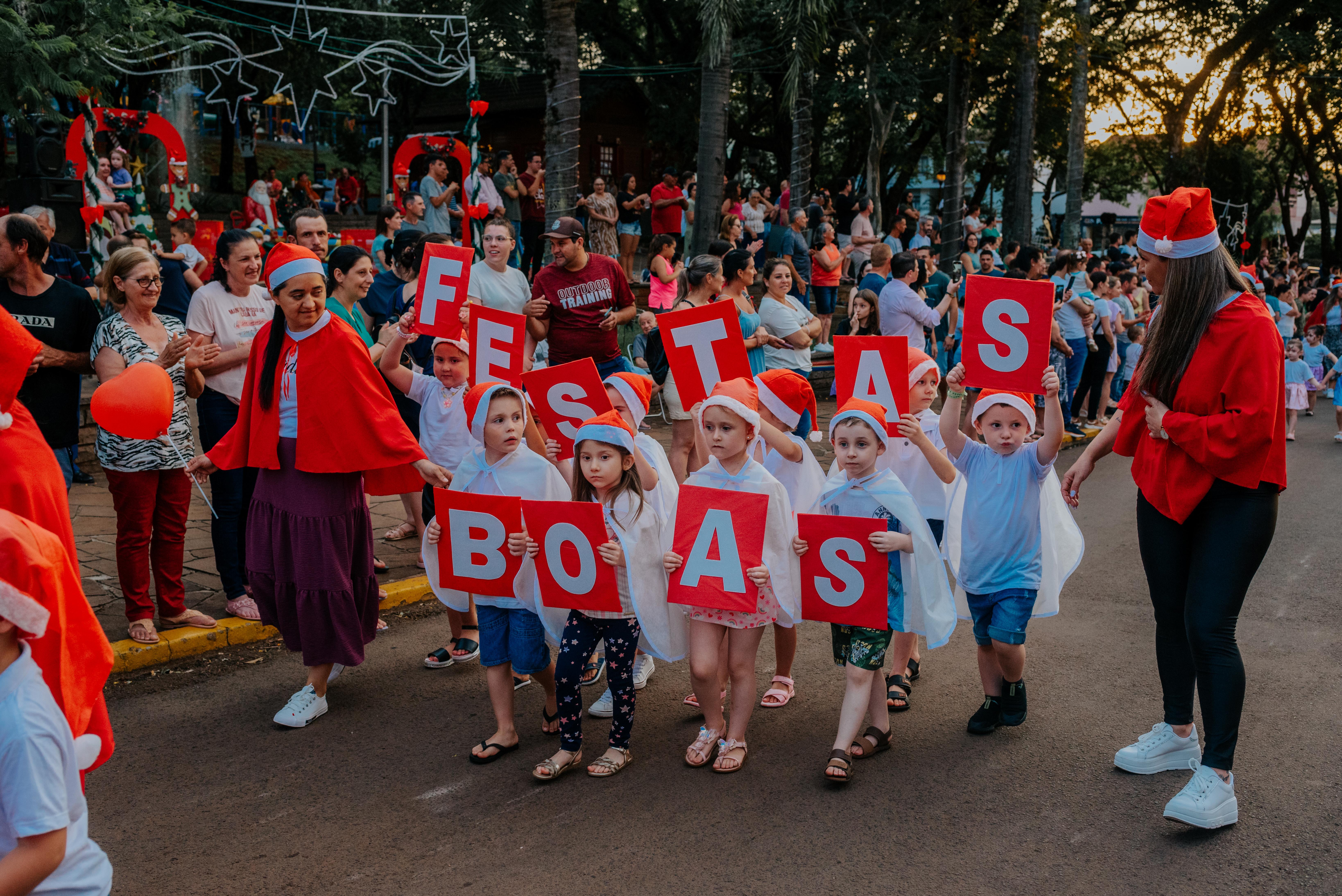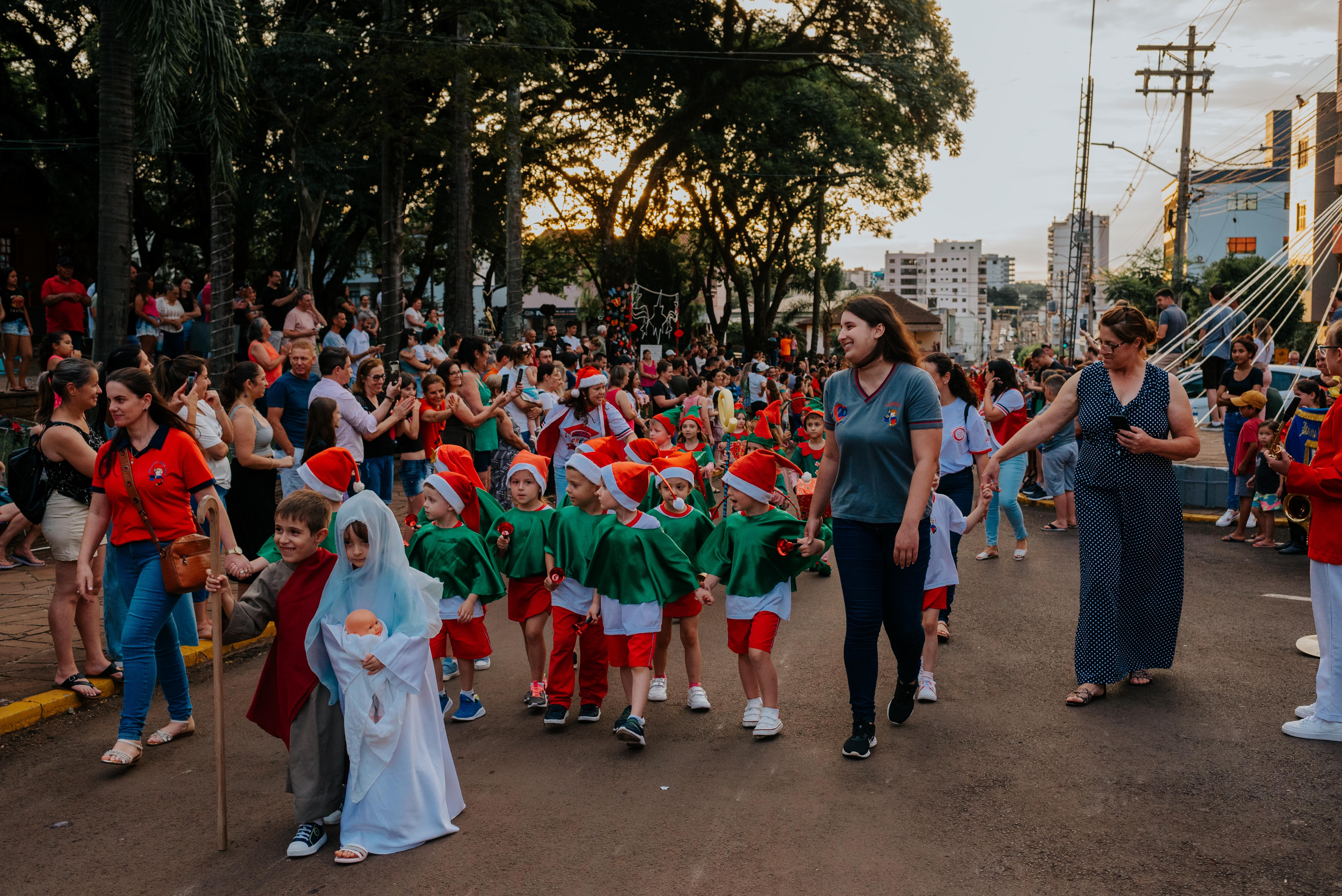 A comunidade lotou a via e a Praça Central para prestigiar o desfile, que contou com elementos natalinos e personagens típicos desta época, figurados pelas escolas e entidades do Município, demonstrando a história, a magia e os encantos do Natal. A Banda Marcial Municipal também realizou apresentações aos presentes.