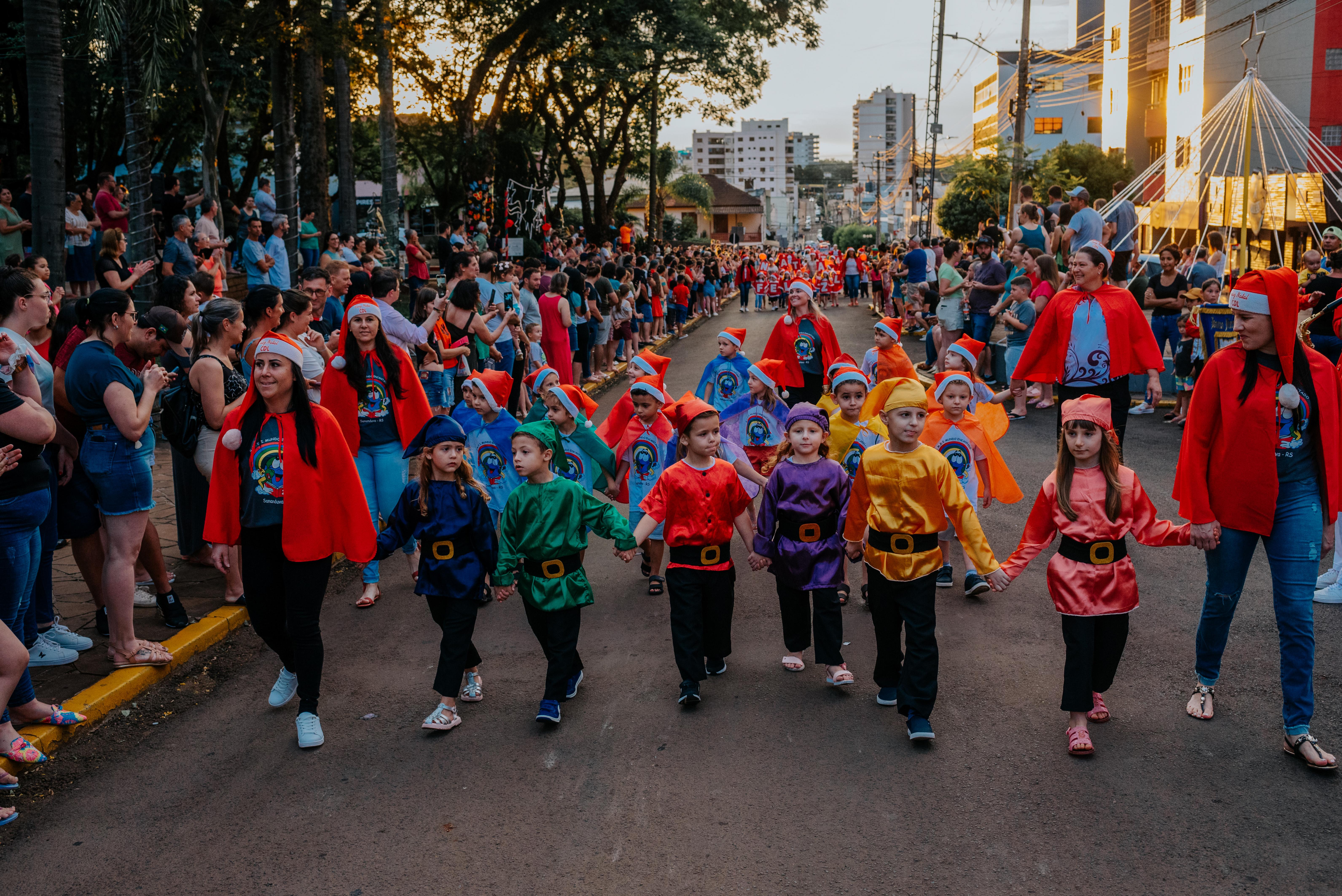 Já no entardecer, a Avenida Salzano da Cunha se transformou em uma verdadeira passarela mágica. O desfile temático de Natal, uma das novidades da programação do Natal Solidário de Sananduva, emocionou e contagiou o público presente.