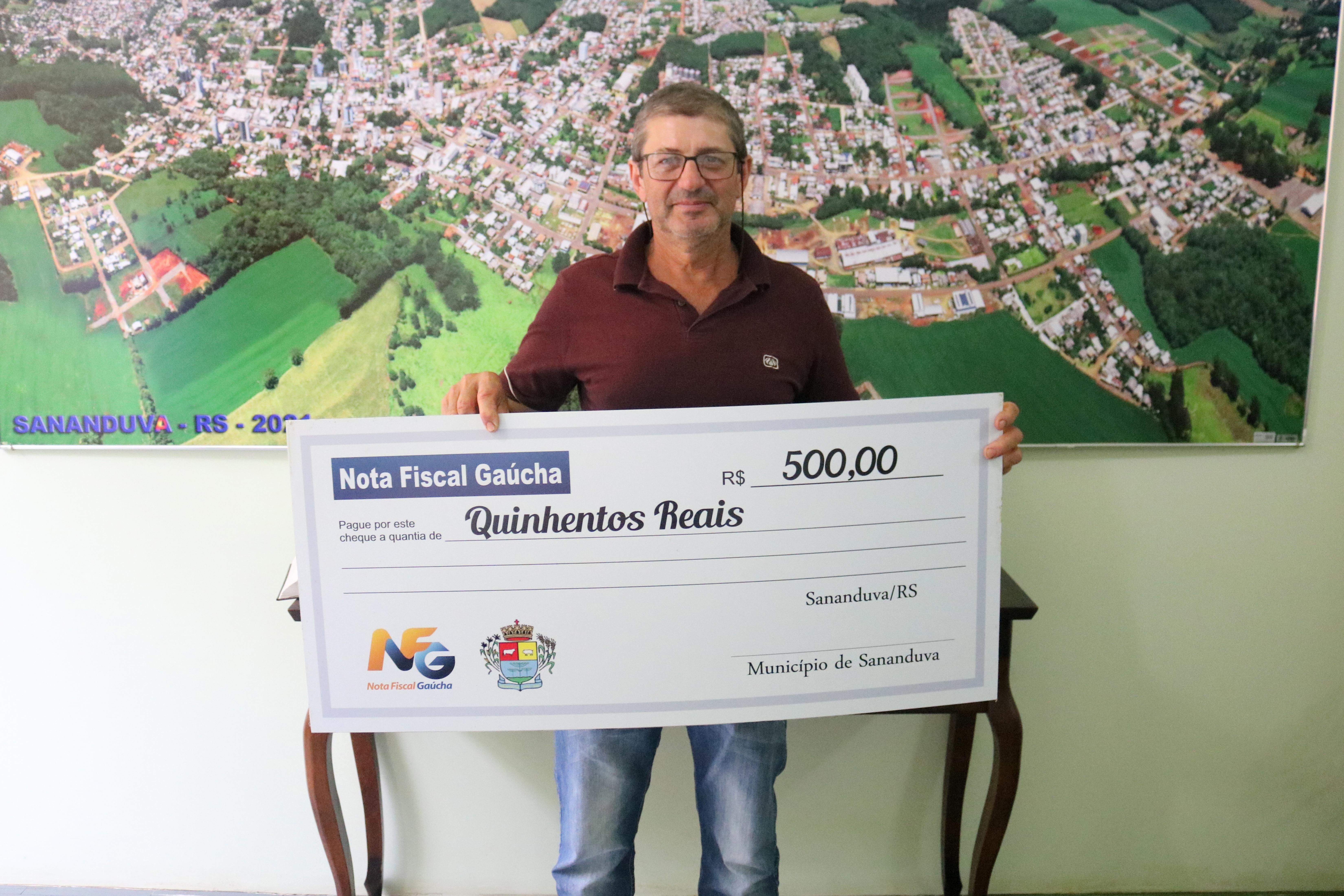 Vagner Marino Galina e Osmar Francisco Webber, moradores de Santo Expedito do Sul, foram os contemplados no sorteio municipal dos meses de novembro e dezembro, respectivamente, do Programa Nota Fiscal Gaúcha.