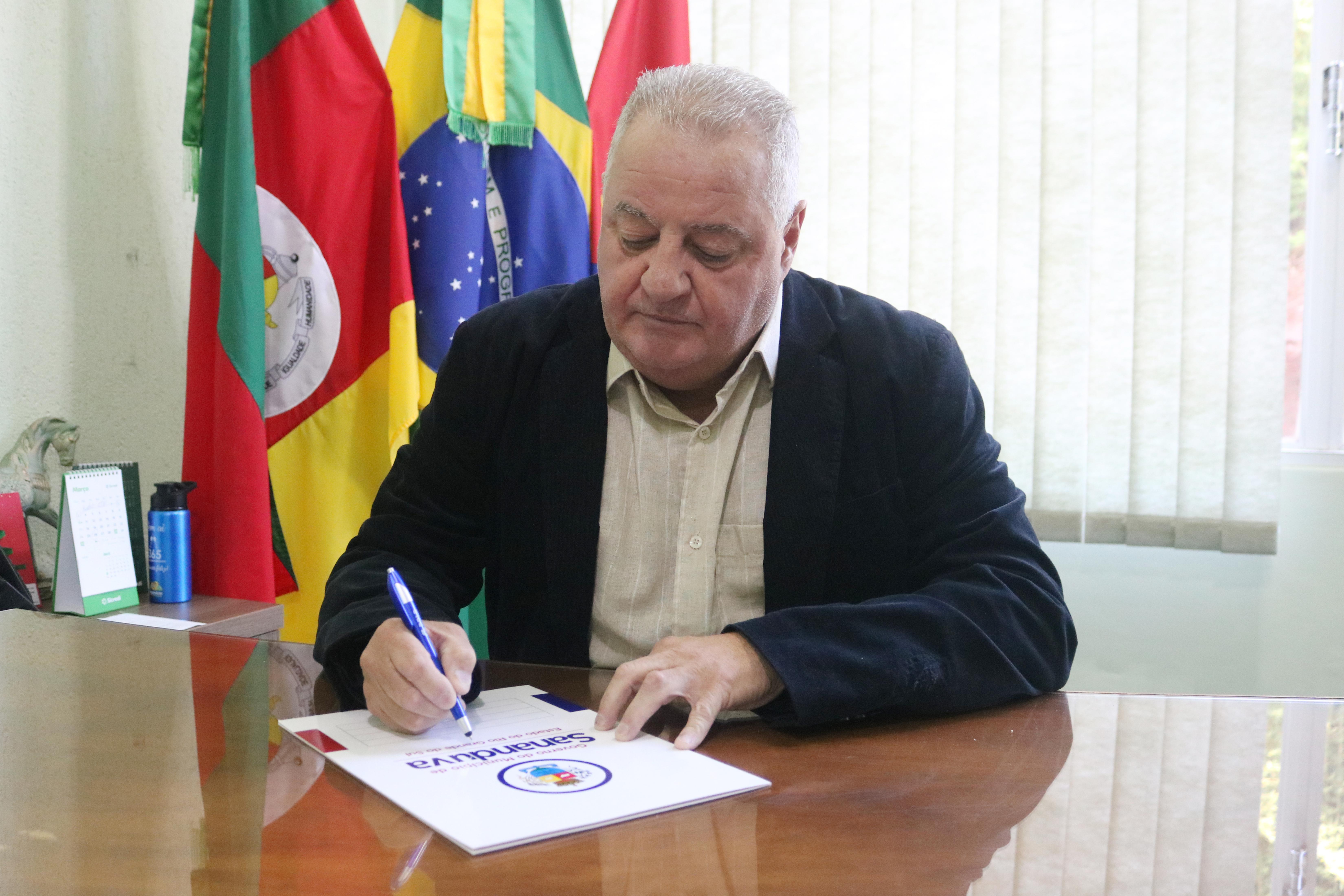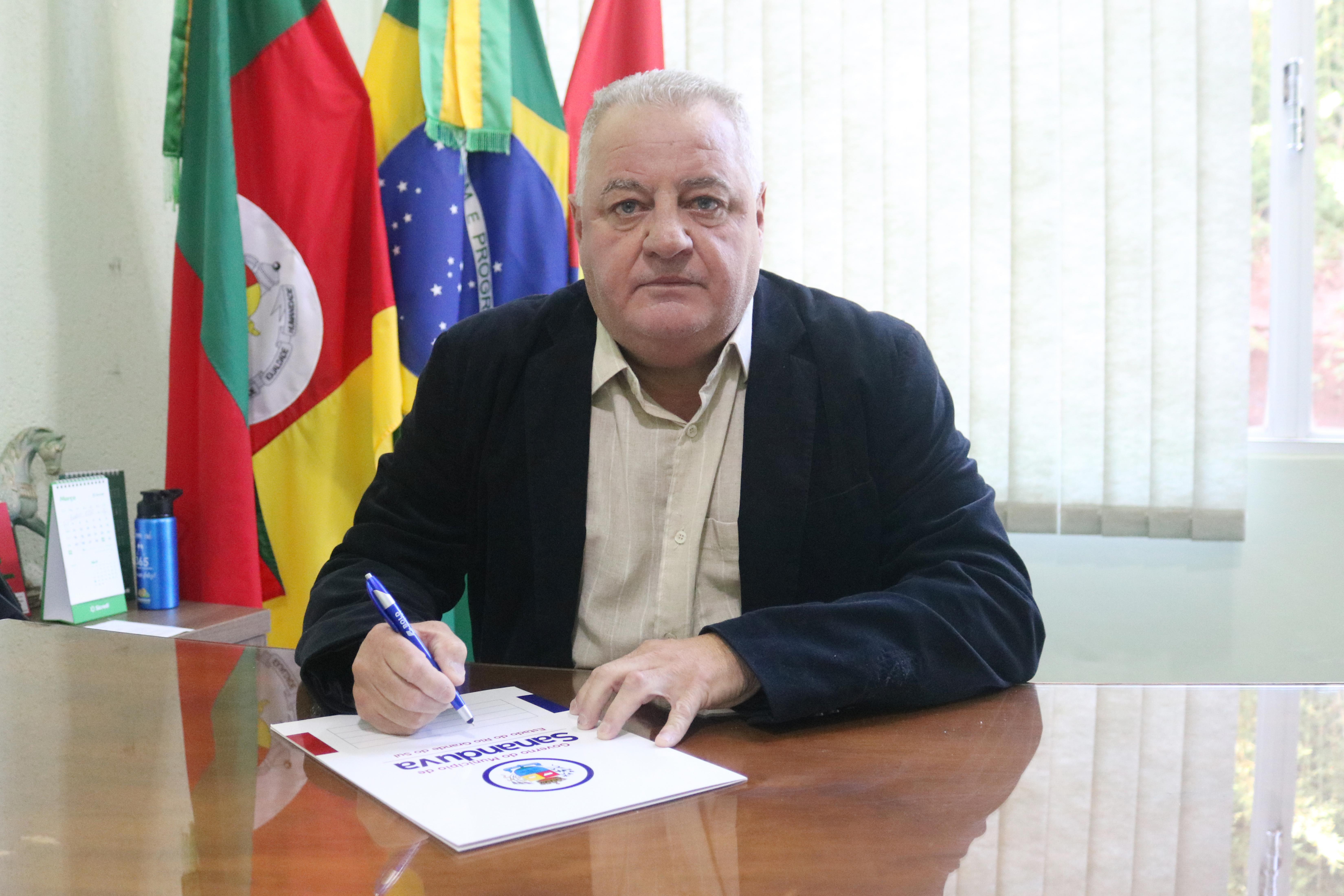 Na manhã desta quarta-feira (20), o prefeito Vermelho Pansera, que entrou em férias pelo período de cinco dias, transmitiu o cargo de Prefeito Municipal ao vereador Lorinaldo Bernardi, presidente da Câmara de Vereadores. A cerimônia aconteceu no Gabinete do Prefeito e foi acompanhada por autoridades, servidores e imprensa local.