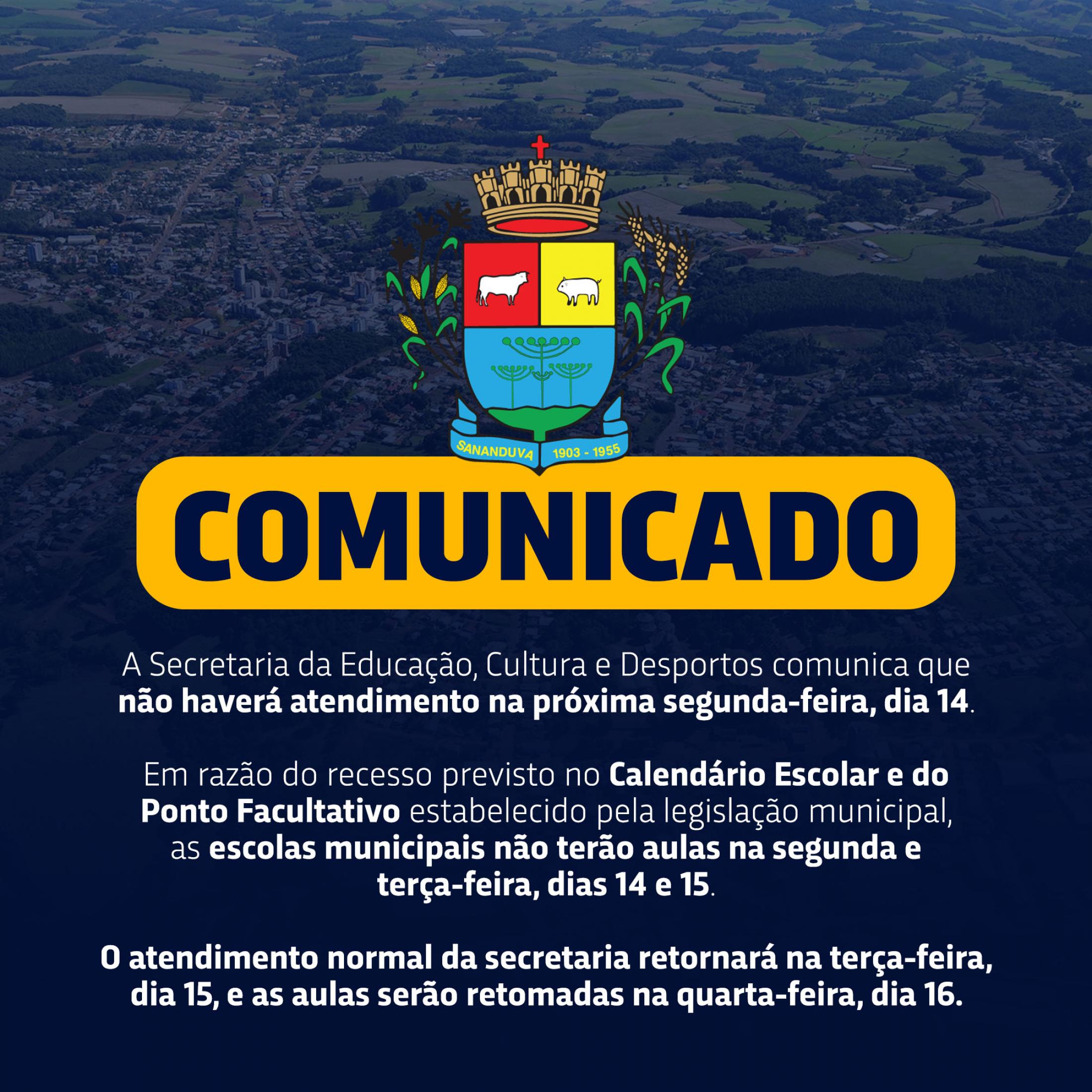 Comunicado - Ponto Facultativo na Rede Municipal de Ensino