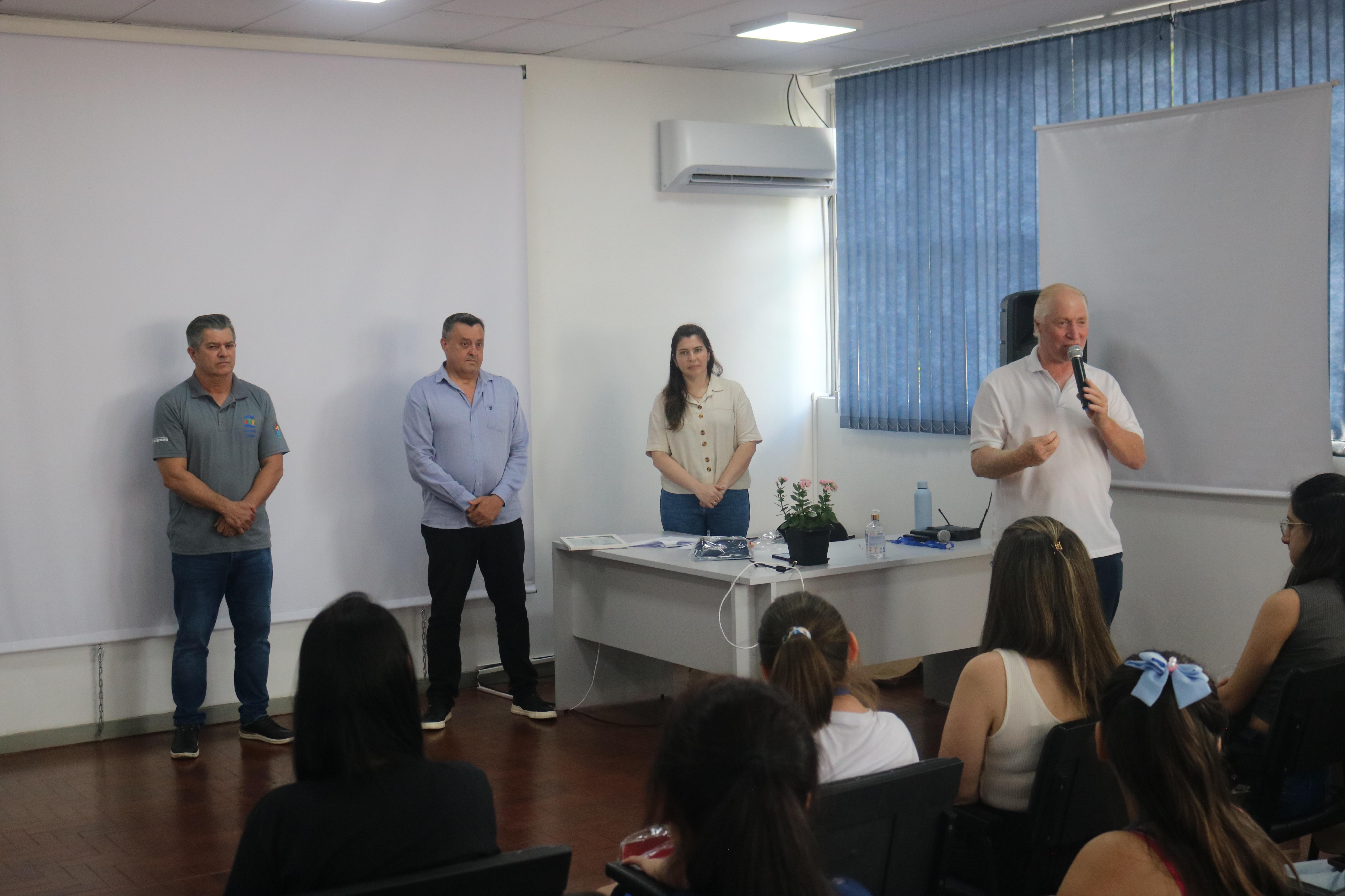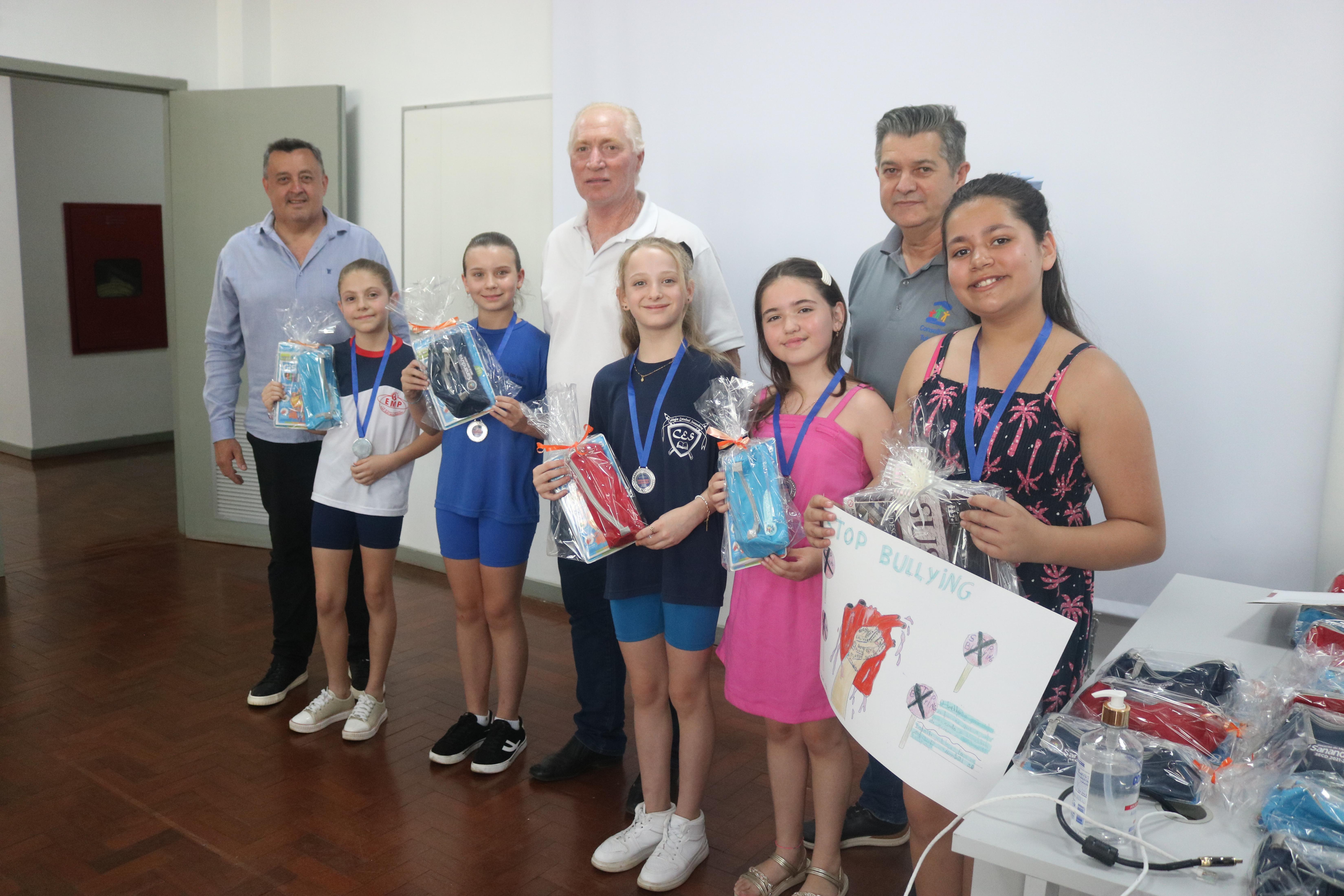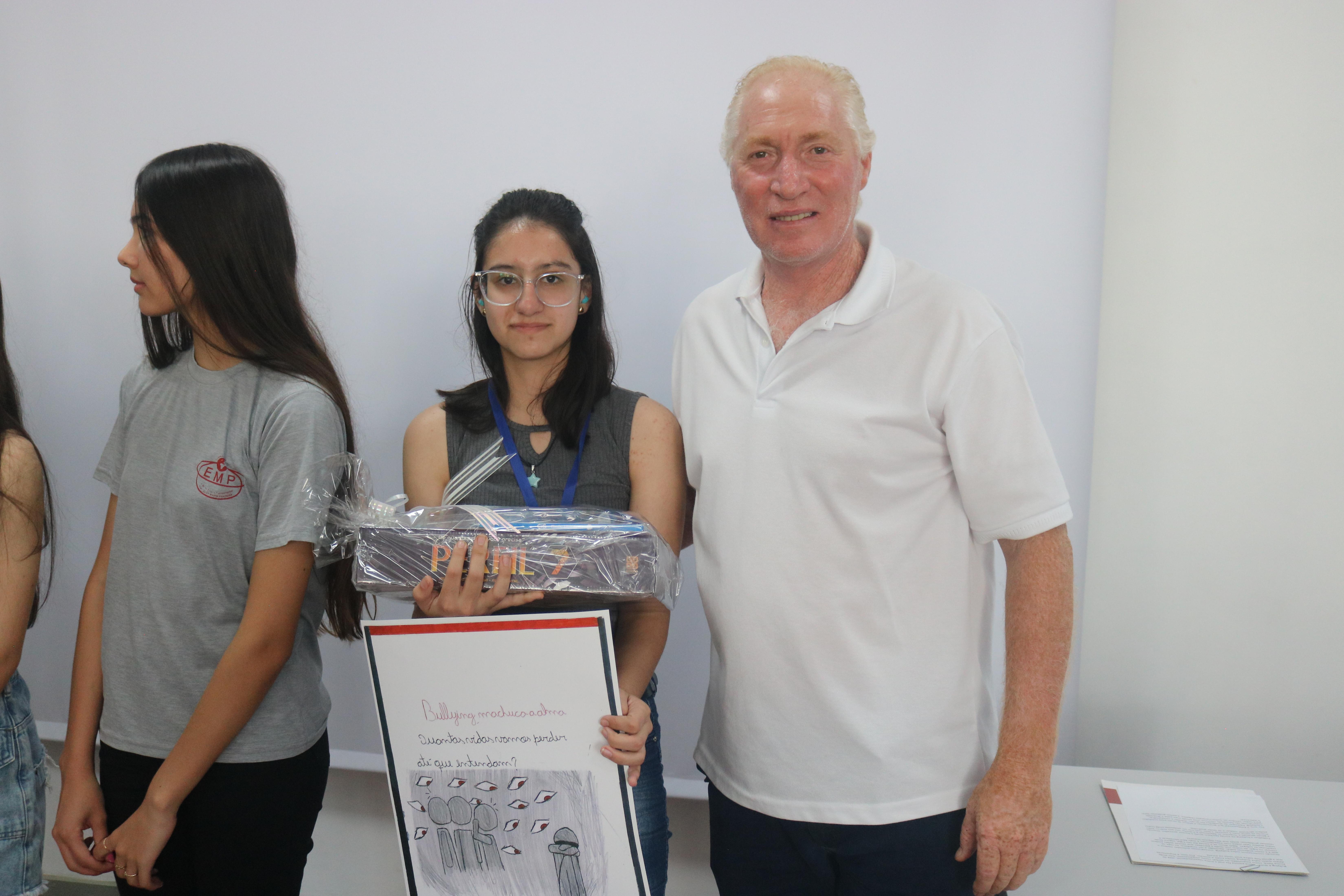 O ato de premiação contou com a presença de representantes da rede pública de ensino, do Conselho Tutelar, do prefeito Vermelho Pansera e do secretário interino da Educação, Cultura e Desportos, Carlos José Picolotto.