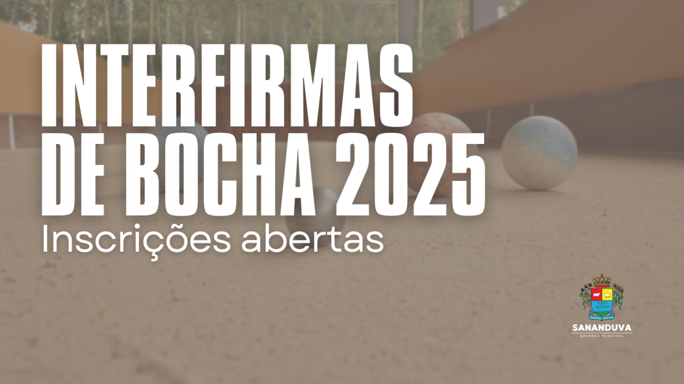 A Secretaria de Cultura, Esporte, Lazer e Turismo, por meio do Departamento de Esporte, informa que estão oficialmente abertas as inscrições para as Interfirmas de Bocha 2025.