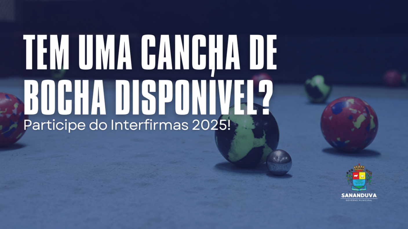 A Secretaria de Cultura, Esporte, Lazer e Turismo, por meio do Departamento de Esporte, informa que está aberto o cadastro de canchas de bocha para o Campeonato Interfirmas de Bocha 2025, em Sananduva.