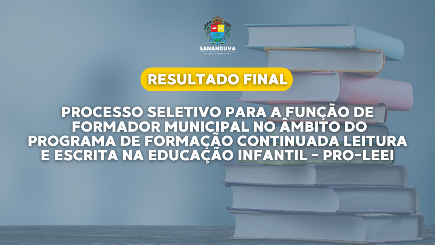 A Prefeitura de Sananduva, por meio da Secretaria Municipal da Educação, torna público o resultado final do Edital de Chamada Pública nº 01/2025, referente ao processo de seleção de Formador(a) Municipal do Programa de Formação Continuada Leitura e Escrita na Educação Infantil (ProLEEI).