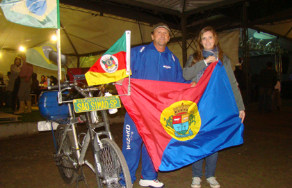 No palco principal do Acampamento Farrapo João Pires de Lima, durante as comemorações da Semana Farroupilha, Carlos foi aplaudido e recebeu das mãos do prefeito Antonio Roberto Caldato a bandeira do Município. Sua meta é chegar a 4.300 bandeiras que serão estendidas no Estádio do Maracanã durante a abertura da Copa de 2014.