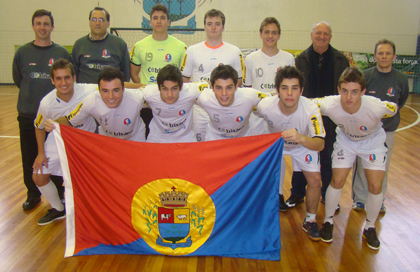 Foto: (Da esq. para dir., em pé) Rodrigo Lunardi (treinador), Sérgio Fracasso (presidente ADS), João Bersch da Cruz (goleiro), Jean Carlos Durante (fixo), Luis Felipe Foscarini (fixo/ala), Leomar José Foscarini (supervisor) e Cássio Balzan (preparador físico). (Da esq. para dir., agachados) Felipe Defaveri (fixo), Angelo Calegari Canali (ala), Lucas de Britto Boeira (ala/pivô), Dinarte Giaretta (ala), Alexandro Giaretta (ala/pivô) e Marco Antônio Pastro (fixo/ala).
