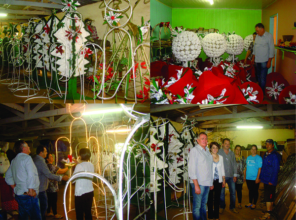 O prefeito Antonio Roberto Caldato e o vice-prefeito Loevir Benedetti, juntamente com a primeira-dama Lucivane Dametto, estiveram no Cemacas – Centro Municipal de Apoio à Criança e ao Adolescente de Sananduva acompanhando a confecção dos enfeites natalinos. O grupo de funcionários coordenados pelo gabinete da primeira-dama está diariamente desde o mês de agosto transformando materiais reciclados, principalmente garrafas pet, em lindos adornos que ganharão as ruas e praças da cidade no começo de dezembro. O prefeito parabenizou o grupo de funcionários pelo trabalho que estão realizando, que além de demandar muita criatividade, necessita de comprometimento e habilidade.