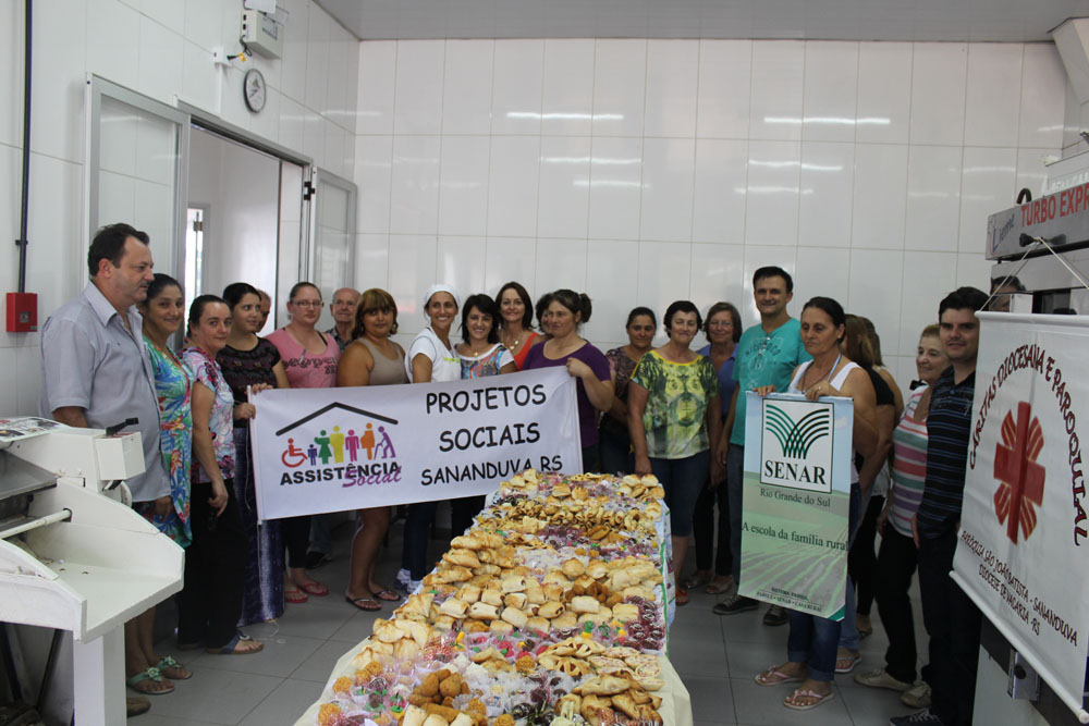 Na tarde do dia 02 de abril, aconteceu uma confraternização que marcou o encerramento do Curso de Doces e Salgados promovido pela Administração Municipal através da Secretaria de Assistência Social e CRAS (Centro de Referência de Assistência Social) de Sananduva em Parceria com o SENAR, Sindicato Nacional e Aprendizagem Rural e Pastoral do Pão. O curso gratuito teve a duração de 3 dias, contou com a participação de 18 pessoas e foi ministrado pela instrutora Marines Demarco do SENAR, muito animada e criativa, repassou com sabedoria os segredos para fazer deliciosos doces e salgados.