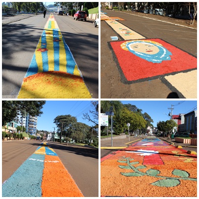 Além da missa e procissão a tradição católica também tem o costume de enfeitar as ruas com grandes tapetes coloridos que formam desenhos que fazem alusão à figura de Cristo, do pão e do cálice.