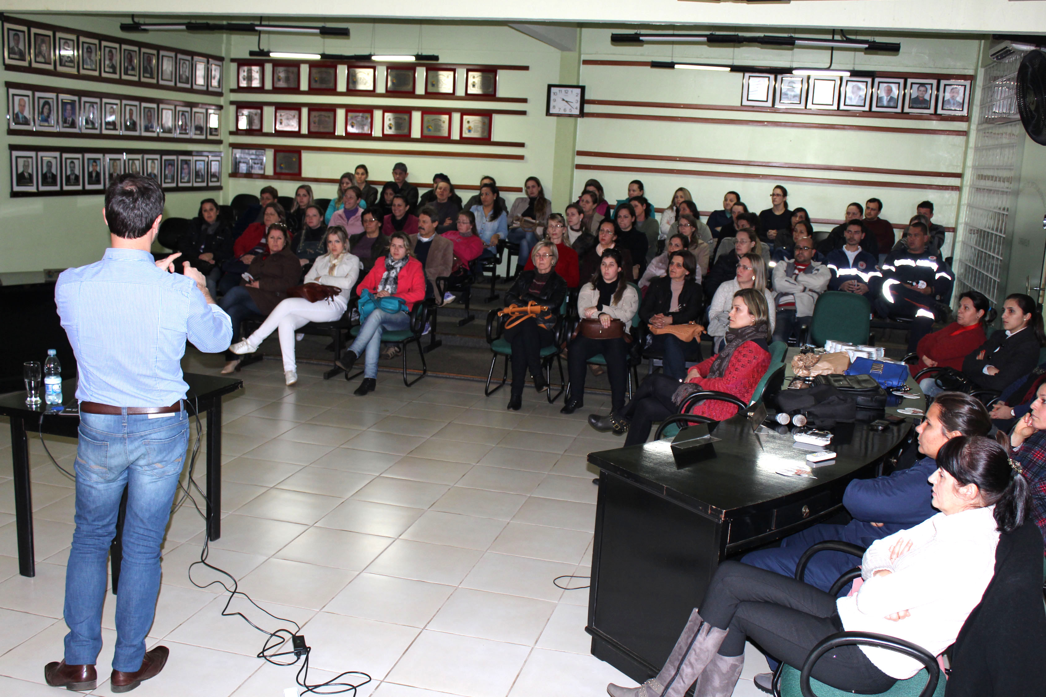A capacitação, com coordenação da Equipe São Roque do Bairro Vila Jardim, aconteceu na Câmara Municipal de Vereadores no período da tarde com o palestrante Dr. Pedro Arnoud, que prestou informações sobre a pressão alta e sintomas do infarto, entre outros assuntos.