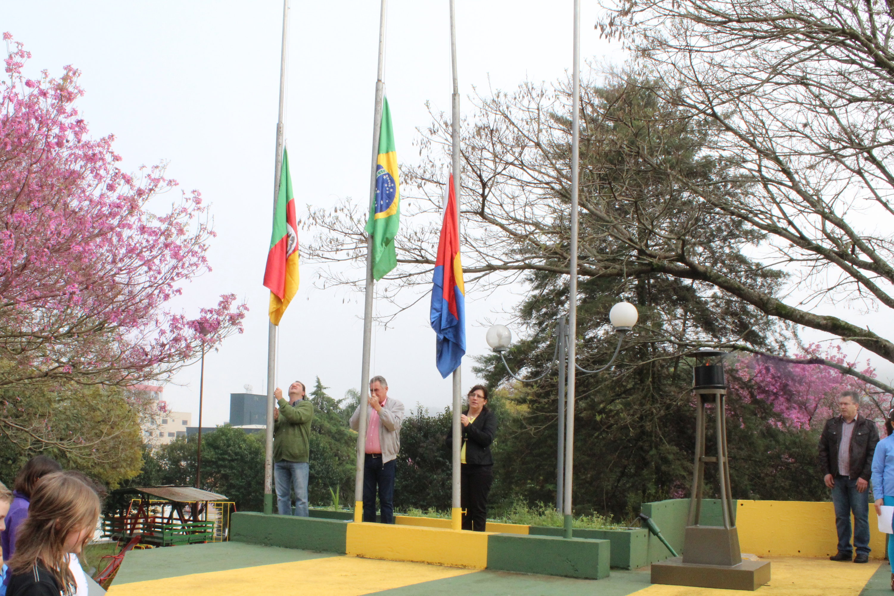 Os atos oficiais, alusivos a Semana da Pátria em nosso Município iniciaram na manhã desta segunda feira dia 1ª de Setembro as 8h30min, junto ao Palanque Oficial em frente a Prefeitura Municipal, com a Chegada e benção do Fogo Simbólico, Hasteamento dos Pavilhões, pronunciamento do Prefeito Municipal Antônio Roberto Caldato e do Secretário Municipal de Educação e Leomar José Foscarini.