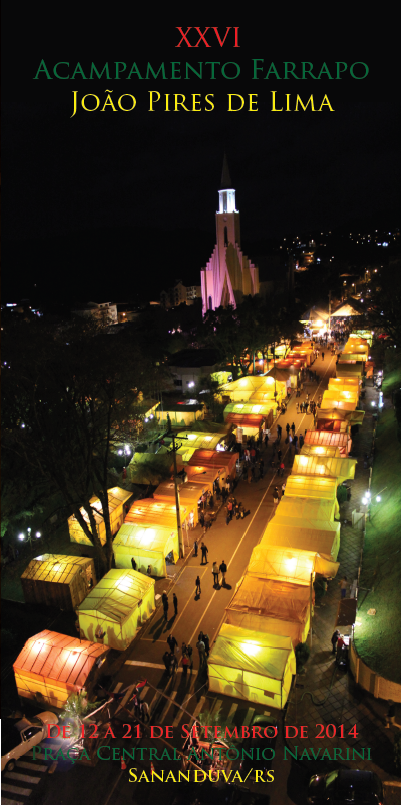 Com a abertura oficial programada para sexta feira 12/09 com Jantar Fandango no CTG Doze Braças, a Semana Farroupilha de Sananduva e o XXVI Acampamento Farrapo João Pires de Lima se estenderá até o próximo dia 21/09 com Shows, programação artística, cultural, danças e a iguaria gaúcha estarão presentes nesses dias ao longo da Avenida Fiorentino Bacchi e Praça Prefeito Antônio Navarini.