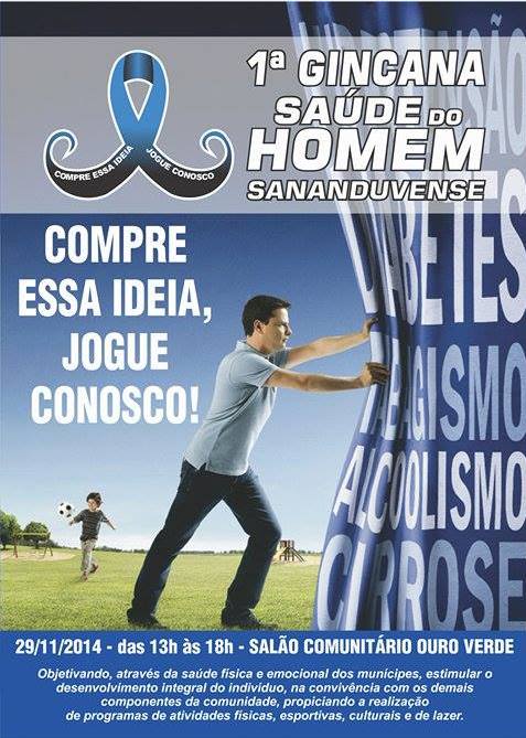 Acontece sábado, 29/11, no Centro Comunitário Ouro Verde a 1ª Gincana Esportiva Promovendo a Saúde do Homem Sananduvense com atividades como: Jogo de Bocha Trio e 48, Campeonato de Pênaltis, Jogo de Baralho três/sete e Futebol Cinco.