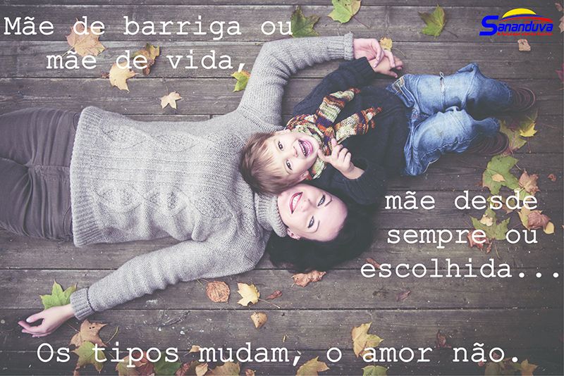 Mãe palavra tão pequena, mas de um infinito e profundo significado, pela grandeza do amor a quem ela representa. Porque ser Mãe não é apenas dar a luz a filhos gerados ou criados, mas sim pela plena e intensa dedicação, renúncia, força, sabedoria e entrega total a missão de gerar, ensinar e encaminhar ao mundo. Pela intensidade de sua vida e pelo exemplo maternal ela merece não apenas bens materiais, mas um abraço fraterno, uma oração do fundo da alma e escrita pelo coração. Em fim uma manifestação que possa expressar, sob todas as formas, o quanto a Mãe, foi, é e sempre será essencial a todos que vieram ao mundo. Feliz Dia das Mães. Uma mensagem do Poder Executivo Municipal de Sananduva pela passagem deste dia.