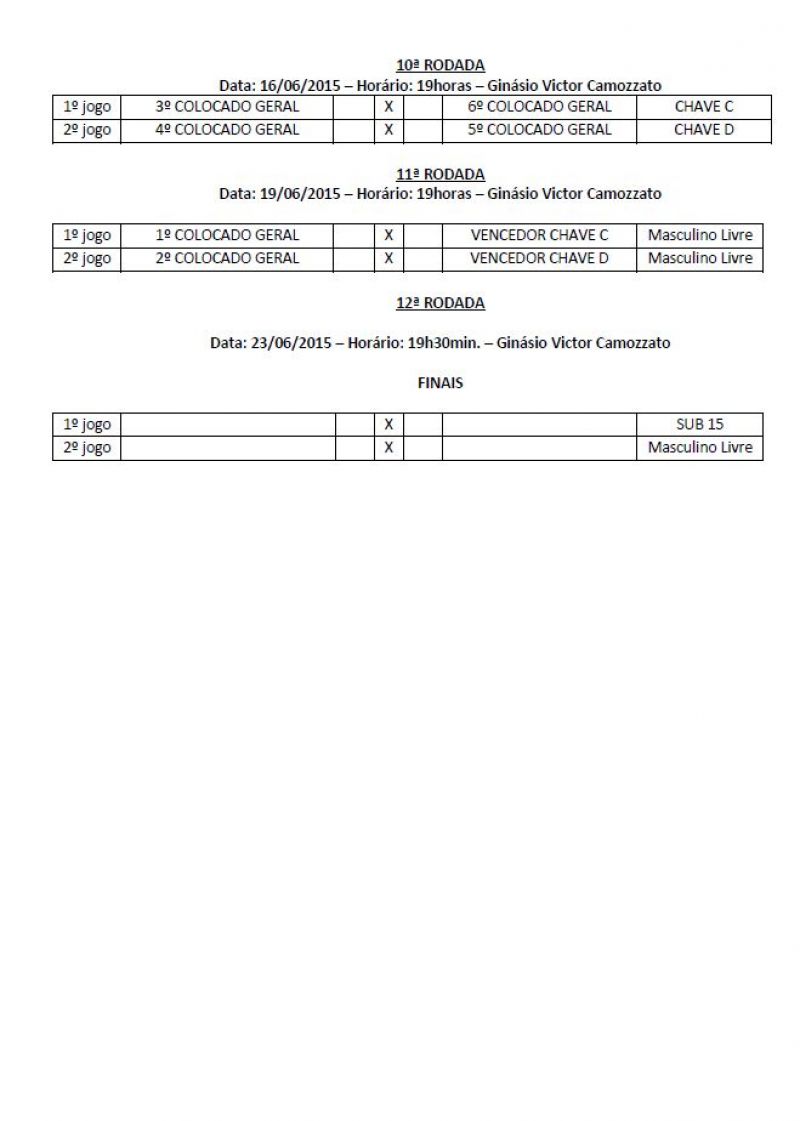 Os jogos acontecem no Ginásio Victor Camozzato e Ginásio Cleci Cavalheiro de Souza, na Escola Santa Teresinha sempre com início às 19 horas.