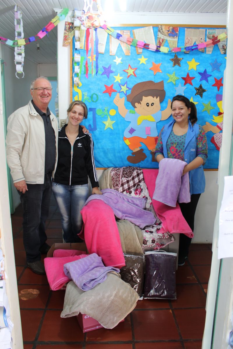Na manhã dessa segunda-feira (08) o secretário municipal de Educação e Cultura Leomar José Foscarini acompanhado de sua equipe efetuaram a entrega de cobertores novos nas escolas municipais de educação infantil da rede pública de ensino, os quais foram adquiridos por meio de campanha interna das secretarias municipais.