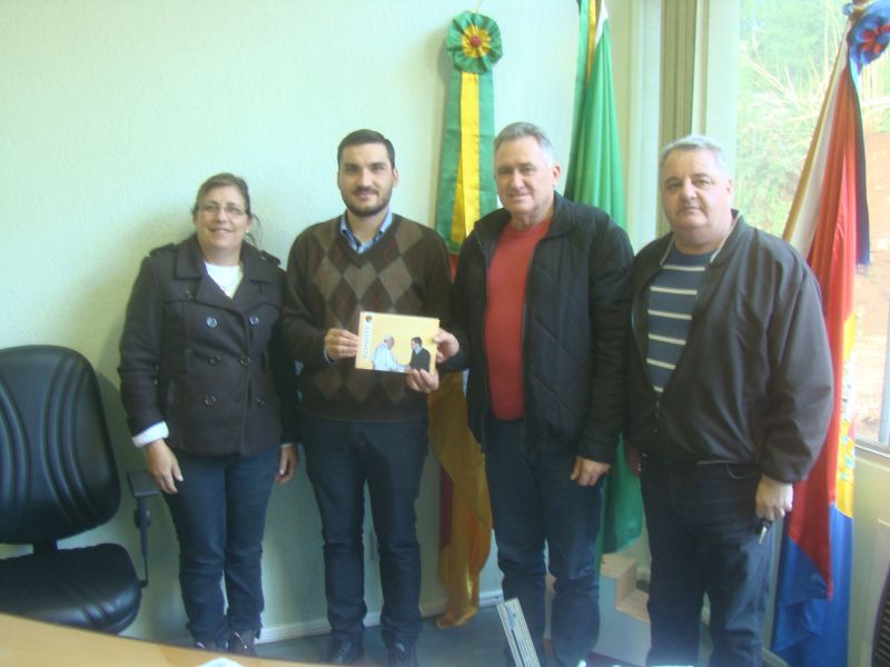 Acompanhado pelo vereador Lorinaldo Bernardi, o Diácono Dhian Paulo Paiz, que será ordenado padre no dia 23 de agosto, às 10 horas na Igreja Matriz São João Batista, esteve no gabinete do prefeito prestando convite para sua ordenação.