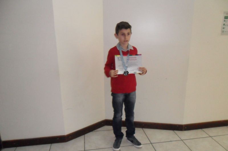 Dos mais de 40 alunos premiados, cinco foram com a medalha de ouro, 10 com a de prata, incluindo o aluno do 7° ano da Escola Santa Teresinha Gustavo Remuzzi, e mais 32 com a medalha de bronze.