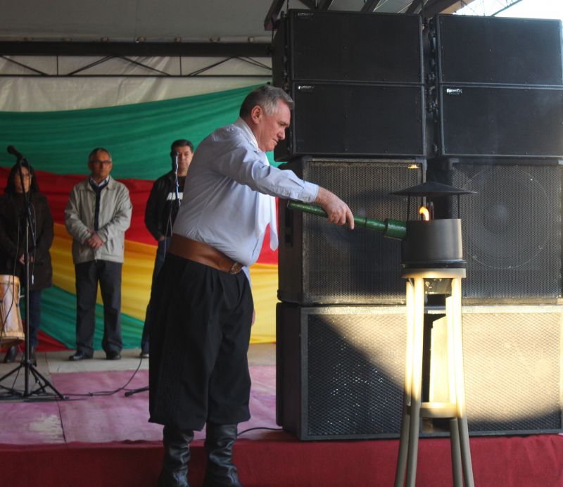 Na abertura oficial, ocorrida no domingo (13), o prefeito Antônio Roberto Caldato destacou em seu discurso a volta às origens e o heroísmo dos farrapos. “Essa volta às origens tem produzido sucessivas gerações de homens e mulheres de bem, que tanto contribuíram e contribuem para o desenvolvimento social e econômico desta terra”. Finalizou agradecendo o empenho da comissão organizadora e das entidades participantes desejando a todos uma boa Semana Farroupilha. Logo após a abertura oficial, os gaúchos e gaúchas presentes fortaleceram sua fé e pediram a benção do Patrão Celestial, com a missa crioula celebrada pelo Padre Edio Brezolin.