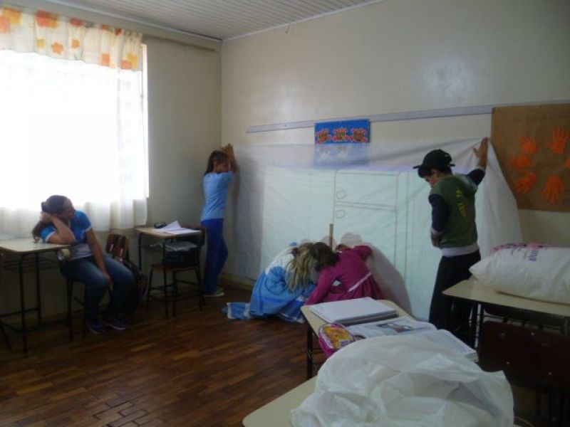 A Escola Municipal de Ensino Fundamental Ernesto Raymundi está desenvolvendo o projeto “Quem conta, reconta, faz de conta...” com os alunos do 6º e 7º anos orientados pelas professoras Marta Dal Pizzol e Rejane Fracasso.