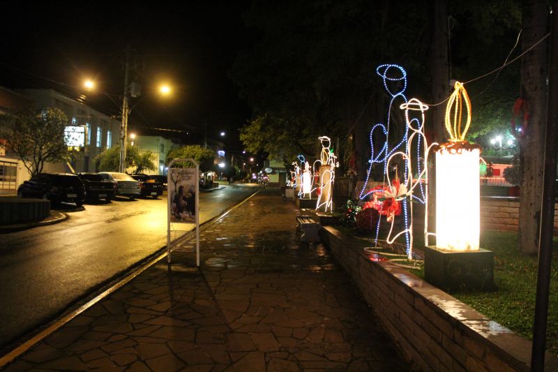 A Praça Central Antônio Navarini esta maravilhosamente iluminada com enfeites natalinos reaproveitados de anos anteriores e feitos com material reciclável.