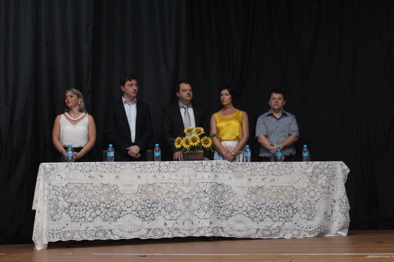 Formaram a mesa principal o Prefeito em exercício Loevir Benedetti e esposa Suzana, o Promotor de Justiça Marcos Roberto Lamin, Presidente da Câmara de Vereadores Rodrigo Getelina, Presidente do Conselho Municipal da Criança e do Adolescente Sheila Ribeiro.