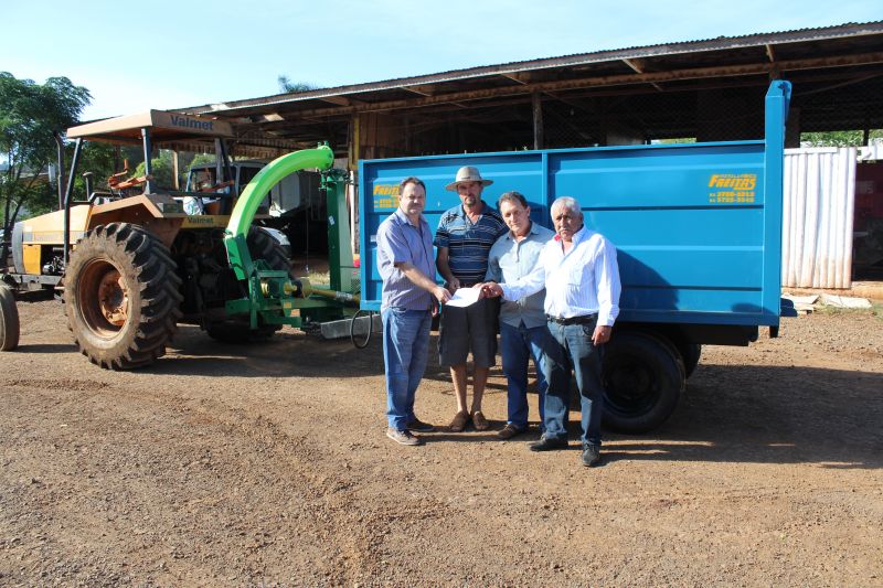 Na manhã desta sexta-feira (22), nas dependências da garagem da Secretaria de Serviços Urbanos, o Prefeito em Exercício Loevir Benedetti e o Secretário da Agricultura e Meio Ambiente José Airton Gamara de Souza, fizeram a entrega de uma Colhedora de Forragens e uma Carreta Agrícola.