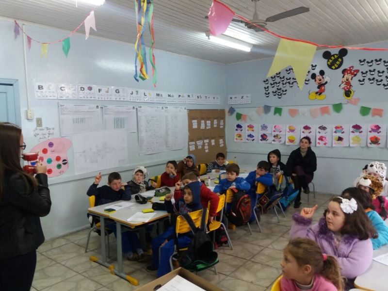 Equipe de Saúde Bucal da Unidade de Saúde São Cristóvão realiza visita na Escola Municipal de Ensino Fundamental Gentil Antônio Tonial. Essa parceria entre Saúde e Educação visa desenvolver o hábito de higienização bucal precoce; tornar prazerosa a visita ao dentista, evitando possíveis traumas; instruindo sobre a utilização correta da escova de dente e do fio dental, quando indicado; além de reduzir custos no futuro, com tratamentos odontológicos mais complexos.