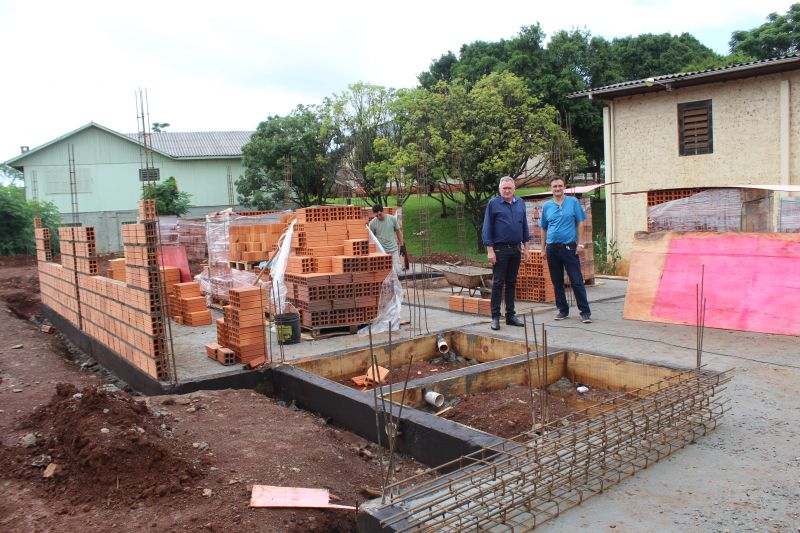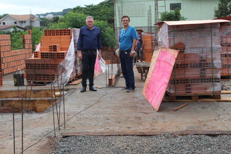 Prefeito Antônio Roberto Caldato e Secretário Municipal de Assistência Social Ronei Paulo Oliboni, visitam a recém iniciada obra de construção do CRAS (Centro de Referência da Assistência Social).
