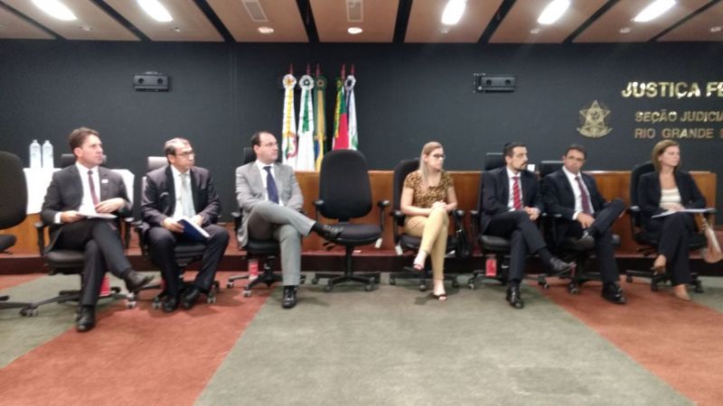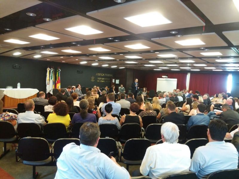A audiência está ocorrendo no auditório da Justiça Federal do Rio Grande do Sul, sob a responsabilidade do juiz Federal Dr. Altair Antônio Gregório, coordenador seccional do Sistecon/RS. Foram convidados todos os municípios que estão na situação descrita acima e ainda o FNDE, TCU, TCE, MPF, MPE, além das entidades Famurs e Undime.