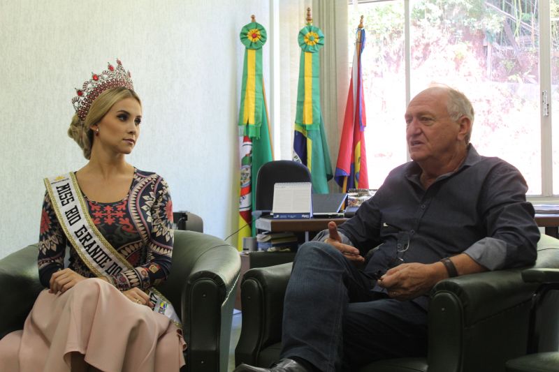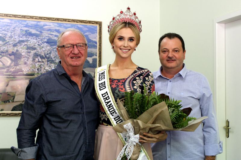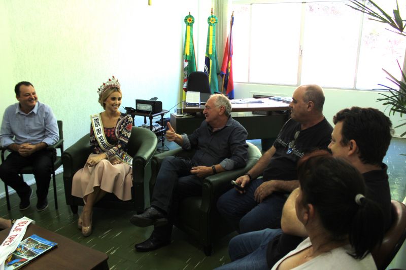 Coroada Miss Mundo Rio Grande do Sul, Daiane Savi foi recebida no gabinete pelo prefeito Leomar José Foscarini, vice-prefeito Loevir Fidêncio Antunes Benedetti e por secretários municipais no início da tarde desta segunda-feira (13).