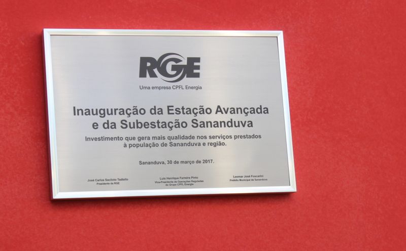 O padre Édio Bresolin, pároco da Paróquia São João Batista, proferiu a benção das instalações. Em seguida, o prefeito municipal de Sananduva Leomar José Foscarini, o vice-presidente de Operações Reguladas da CPFL Energia, Luis Henrique Ferreira Pinto, e o presidente da RGE, José Carlos Saciloto Tadiello, descerraram a placa inaugural das instalações entregues à comunidade de Sananduva e região.