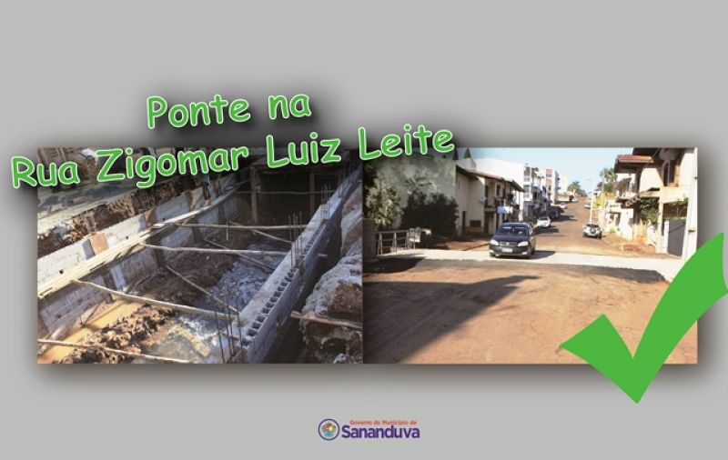 O Governo do Município de Sananduva concluiu a construção da nova ponte na Rua Zigomar Luiz Leite. Após o período necessário para cura do concreto, o trânsito foi liberado na terça-feira (15), favorecendo o deslocamento de veículos por esta via.