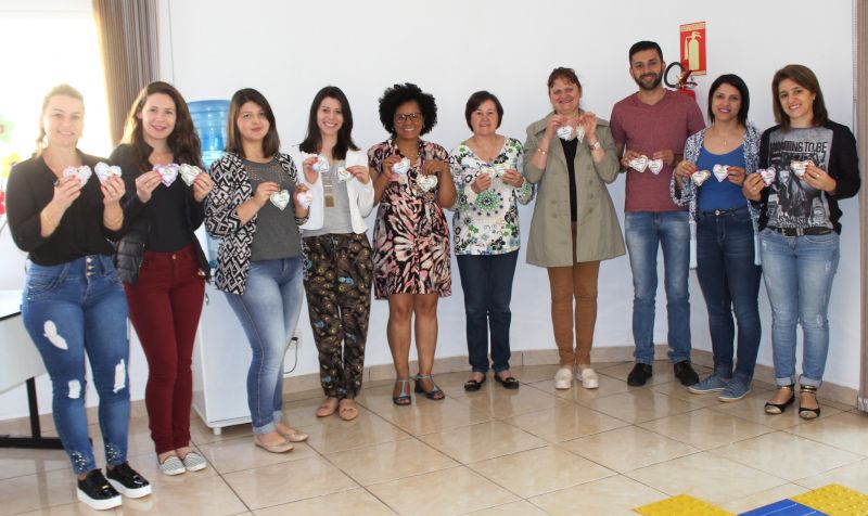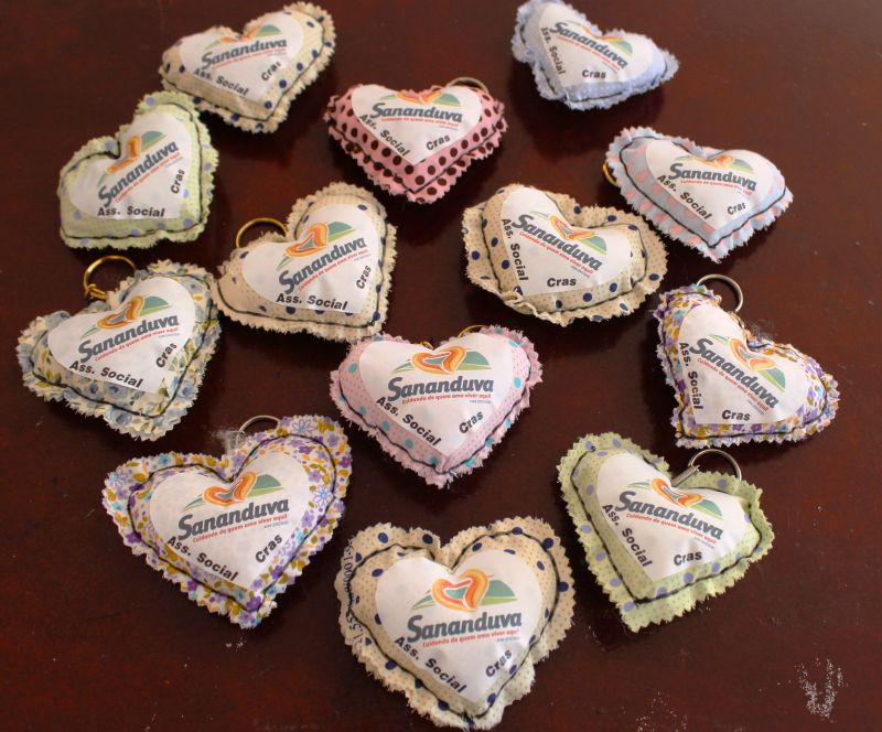Através da parceria entre a Secretaria de Educação, Cultura e Desportos e Secretaria de Assistência Social e Habitação, com o objetivo de divulgar o trabalho do Cras – Centro de Referência de Assistência Social, na manhã de quarta-feira (06), a secretária de Educação esteve nas novas instalações do Cras, que devem ser inauguradas em breve, para receber os mimos. Ao todo, foram 1.212 chaveiros em formato de coração confeccionados pelos grupos do Paif – Programa de Atenção Integral a Família, do Serviço de Convivência e Fortalecimento de Vínculos da Criança e do Adolescente e equipe de colaboradores da Secretaria de Assistência Social e Habitação. Por vários dias, a coordenadora do Cras, Lucivane Dametto, orientou os grupos na produção artesanal dos mimos que abrilhantaram a apresentação das escolas que aconteceu na quinta-feira (07), no Ginásio Victor Camozzato, por ocasião das comemorações da Semana da Pátria.