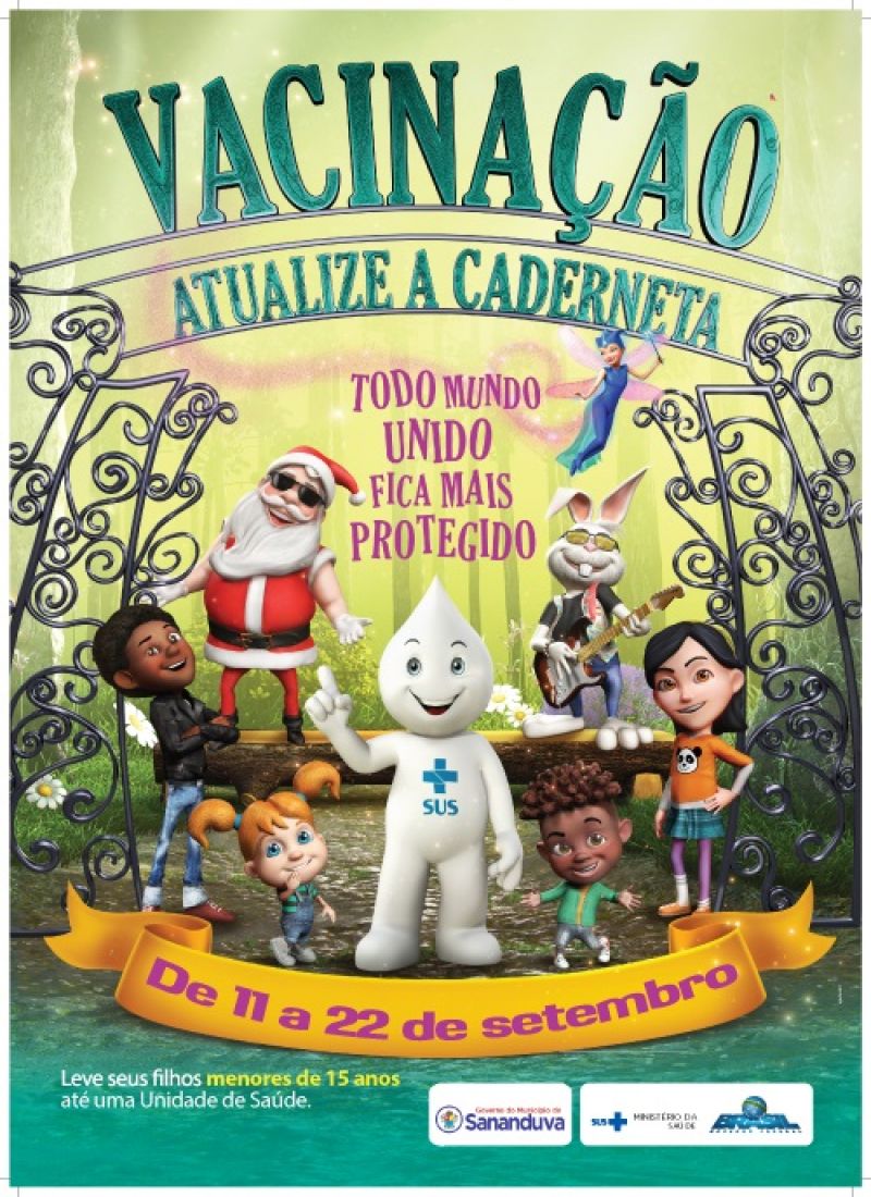 A multivacinação é uma estratégia adotada com a finalidade de atualizar a situação vacinal de crianças e adolescentes menores de 15 anos (14 anos, 11 meses e 29 dias). A Campanha vai ser realizada no período de 11 a 22 de setembro, sendo dia 16 de setembro o dia de divulgação e mobilização nacional. Neste sábado (16), todas as Unidades Básicas do Município de Sananduva estarão abertas das 8 às 17h.