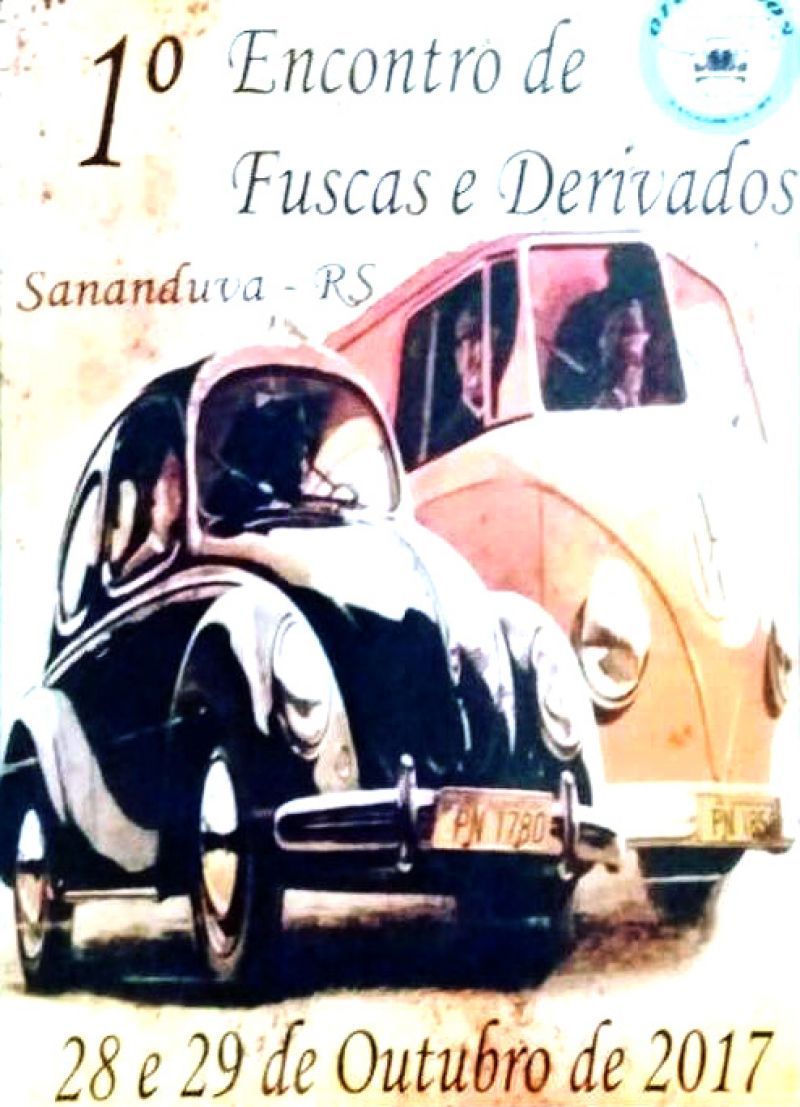 O 1º Encontro de Fuscas e Derivados em Sananduva acontece nos dias 28 e 29 de outubro, no Horto Florestal Frei José. Haverá praça de alimentação, mercado de pulgas, show com artistas locais e área para camping. As inscrições são R$ 25,00 mais 1 kg de alimento não perecível. Os primeiros 100 inscritos ganham um kit personalizado. Informações pelos fones: (54) 9 9938.3846 ou (54) 9 9108.0848.