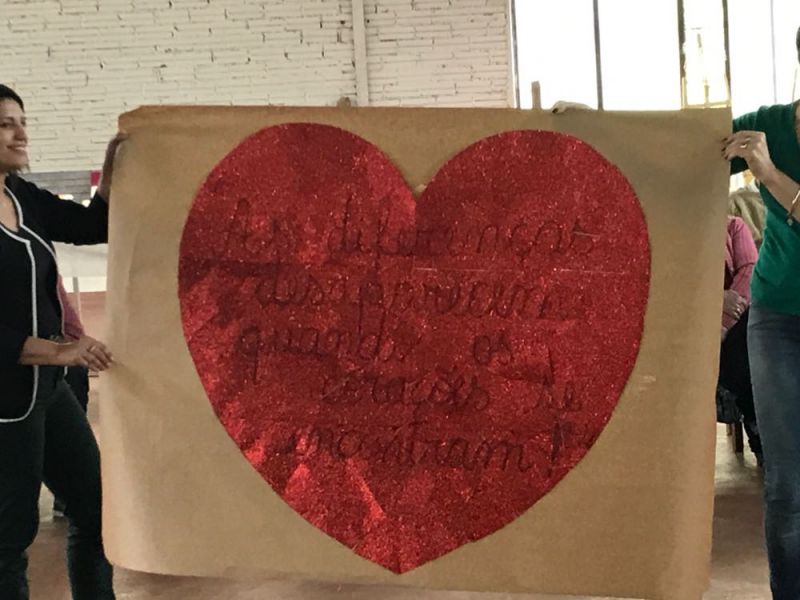 No segundo momento, foi realizada uma dinâmica, onde os participantes montaram um quebra-cabeça que resultou em um coração, o qual simboliza a importância de cada indivíduo e que independente da sua idade ou limitação, cada um é protagonista da sua história e peça fundamental para a construção do coletivo.