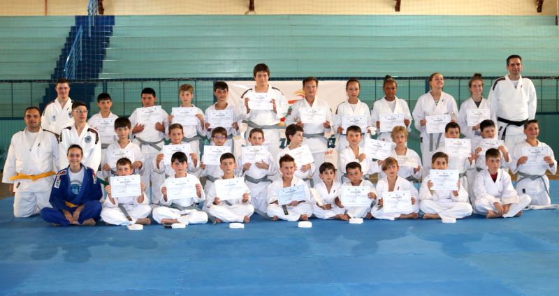 Na tarde de quinta-feira (14), o Centro Esportivo Municipal Victor Camozzato foi palco da Cerimônia de Graduação dos alunos da Oficina de Judô, momento em que foi realizada a primeira troca de faixas. Sob o tatame montado na quadra, pais e professores acompanharam o ato conduzido pelo Sensei, Giuliano Liotto.