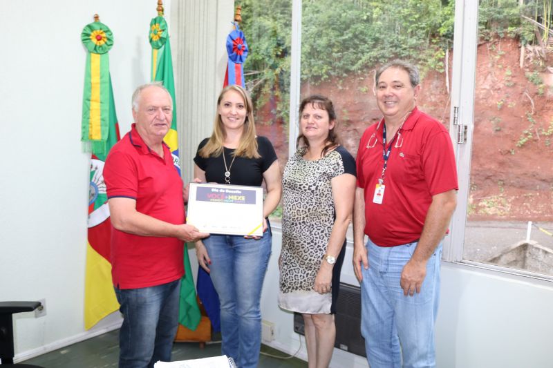 O Prefeito Leomar José Foscarini e a Secretária Municipal de Educação, Cultura e Desportos, Izabel Cristina Barbizan Vastrinche, receberam nesta terça-feira (23) o certificado de participação no dia do desafio 2017.