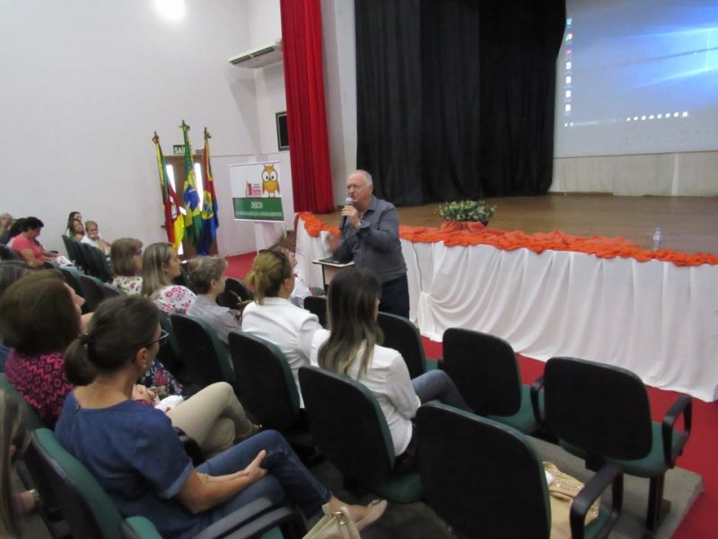 O evento contou com a palestra motivacional de Simoni Perondi, trazendo para discussão assuntos relevantes do dia a dia dos profissionais. Também, o oficineiro, palestrante e contador de histórias, Roger Castro, que participou de forma interativa e descontraída interpretando a professora aposentada Dona Literata. Através da intervenção, abordou temáticas como a motivação no espaço escolar, cooperação entre colegas, respeito às diferenças, integração do aluno com o educador, valorização das habilidades, motivação para sanar as carências, iniciativa e proatividade.