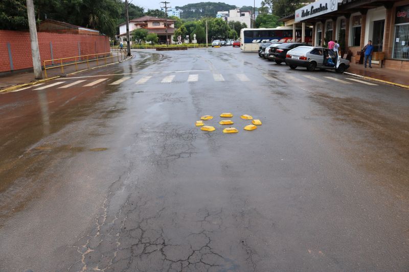 Também foram colocados tachões nos cruzamentos das principais vias da cidade, fazendo com que os motoristas façam a manobra correta nas intersecções, diminuindo com isso as possibilidades de acidentes. Essas são medidas que além de proporcionar mais proteção e segurança aos usuários ajudará a reduzir a velocidade dos veículos.
