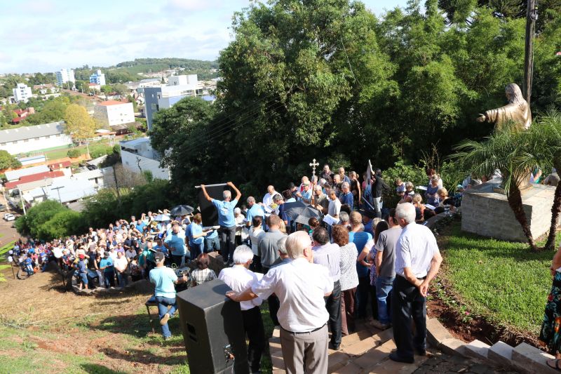 Fieis participaram da Via-Sacra na sexta-feira (30/03) no Mirante Natural, escadaria localizada na Rua Carlos Raymundi nas proximidades da Caixa Econômica Federal. O evento programado pelas Paróquias São João Batista e São José Operário contou com a participação de aproximadamente mil pessoas e foi coordenado pelos párocos Édio Brezolin e Rene Zanandrea, com a participação dos movimentos religiosos.