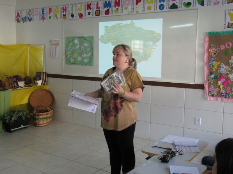 Após foi realizada uma atividade prática através de painéis que mostram as diferentes realidades das tribos indígenas brasileiras. Ao final as participantes compartilharam algumas sugestões de atividades a serem desenvolvidas com os alunos.
