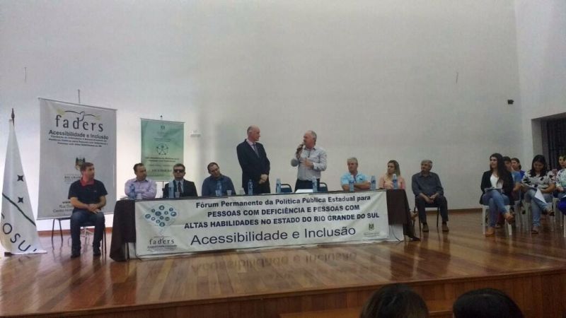 O prefeito municipal Leomar José Foscarini participa nesta manhã de quinta-feira (26), em Lagoa Vermelha, do Fórum Permanente da Política Pública Estadual para Pessoas com Deficiência e Pessoas com Altas Habilidades no Rio Grande do Sul. O objetivo é debater e propor alternativas à implantação de políticas públicas destinadas a esse segmento social nos municípios gaúchos.