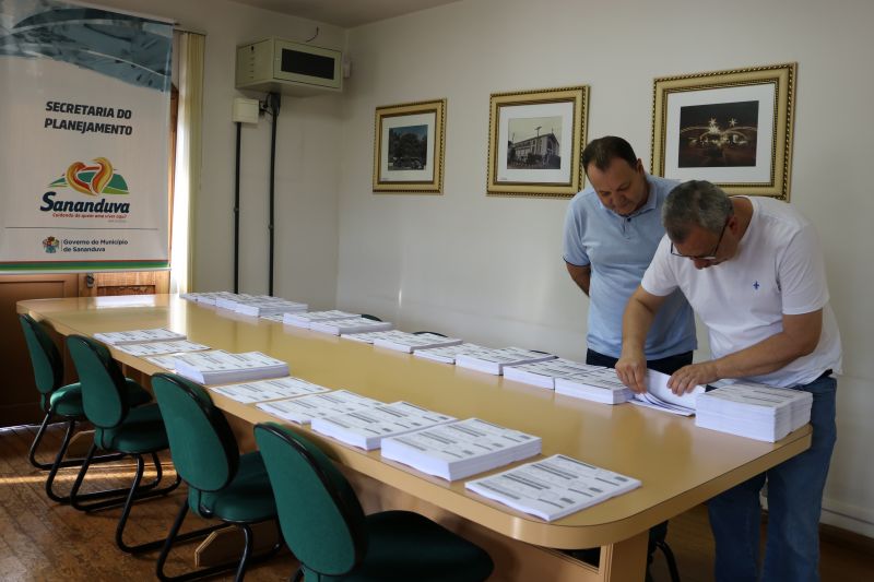 O prefeito Leomar José Foscarini e o vice-prefeito Loevir Benedetti estiveram na Casa da Cultura para retirar as guias do IPTU e acompanhar o desenvolvimento do trabalho. A partir deste ano, o IPTU fica disponível para retirada na Casa da Cultura das 8h às 19h, sem fechar ao meio dia. Os proprietários de terrenos baldios também devem retirar a guia na Casa da Cultura. Essa iniciativa adotada diminui o transtorno de não encontrar o contribuinte no endereço ou entregar o carnê para terceiros.