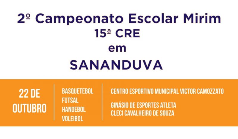 O 2º Campeonato Escolar Mirim estimula a prática esportiva em todas as escolas públicas, nos 41 municípios de abrangência da 15ª CRE - , mobilizando a comunidade escolar em prol do esporte educacional. Em razão do número expressivo de 110 escolas e 41 municípios, a região está dividida em 8 microrregiões.